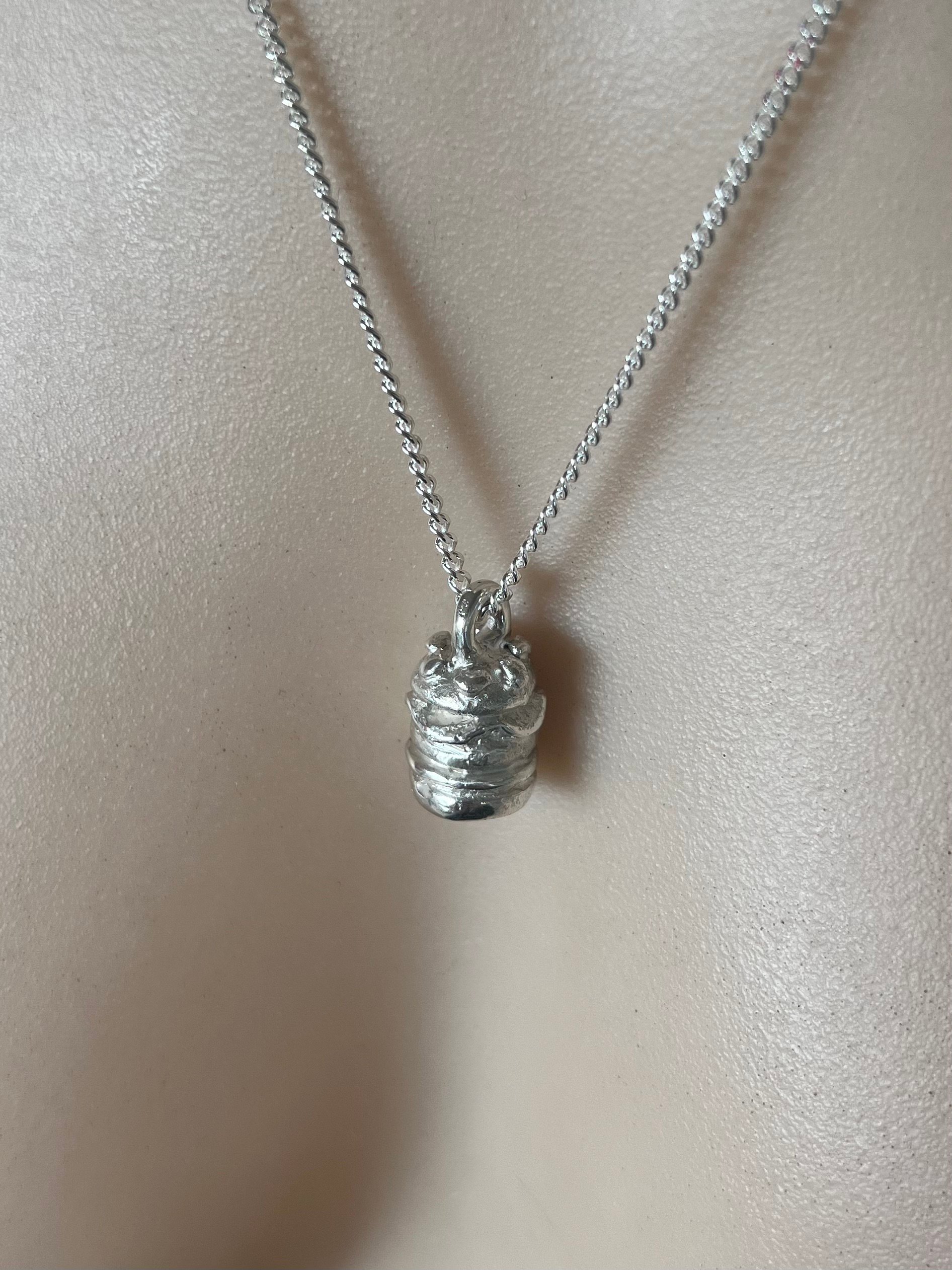 The Burger Charm celebrates Andrew’s Hamburgers in Albert Park – a beloved cult classic of Melbourne’s south side.The pendant responds to the ‘Luna Park’ illustration. While the drawing brings the city’s bayside to your walls, the charm lets you carry it with you.Crafted from recycled sterling silver, the handmade charm features both matte and high polished finishes. The sterling silver chain is included with purchase. Due to the handmade nature of the jewellery, no two pieces are exactly the same, and yours may vary slightly to the piece pictured.Measurements: 20 x 12 x 12mm (approx.)Chain width: 2mmPlease note: This charm has a noticeable weight to it, giving it a solid, high-quality feel.Allow 1-4 weeks for your item to be produced and dispatched via Australia Post (Express Service). You will receive tracking details once it is on the way.For international orders, please enquire by emailing: [email protected]