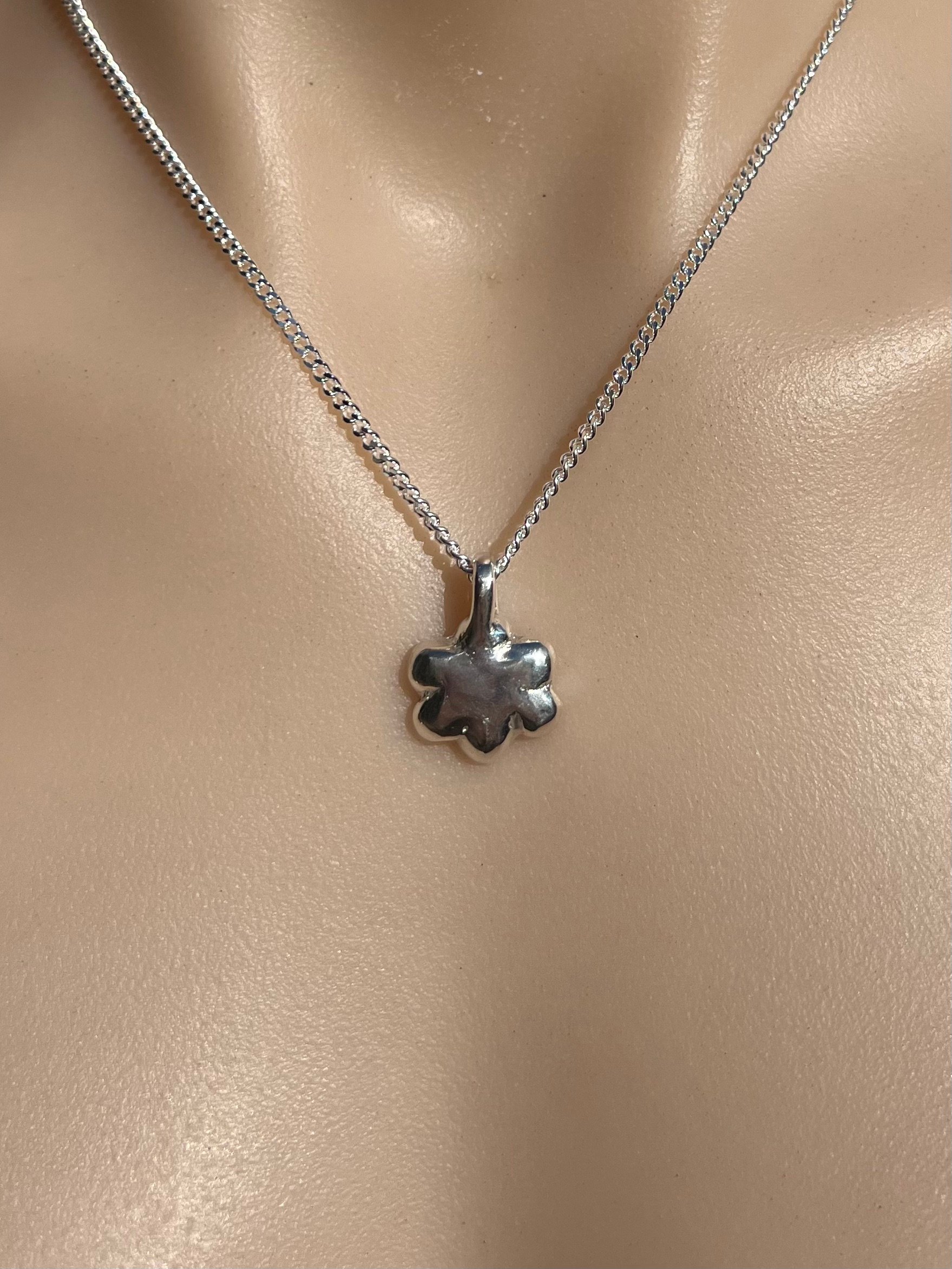 Crafted from recycled sterling silver, the handmade charm features a high polished finish. The sterling silver chain is included with purchase. Due to the handmade nature of the jewellery, no two pieces are exactly the same, and yours may vary slightly to the piece pictured.