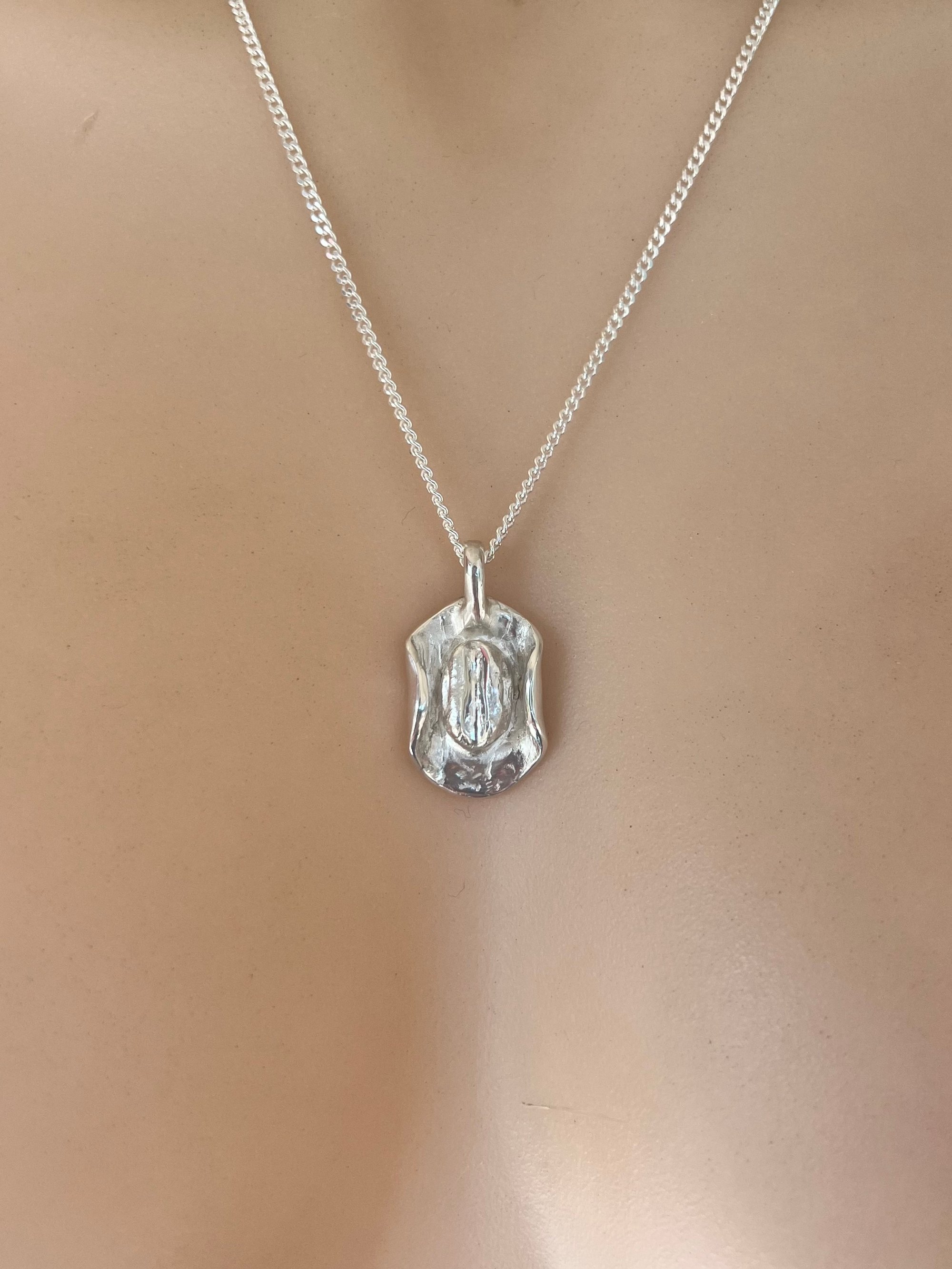 Crafted from recycled sterling silver, the handmade charm features both matte and high polished finishes. The sterling silver chain is included with purchase. Due to the handmade nature of the jewellery, no two pieces are exactly the same, and yours may vary slightly to the piece pictured.