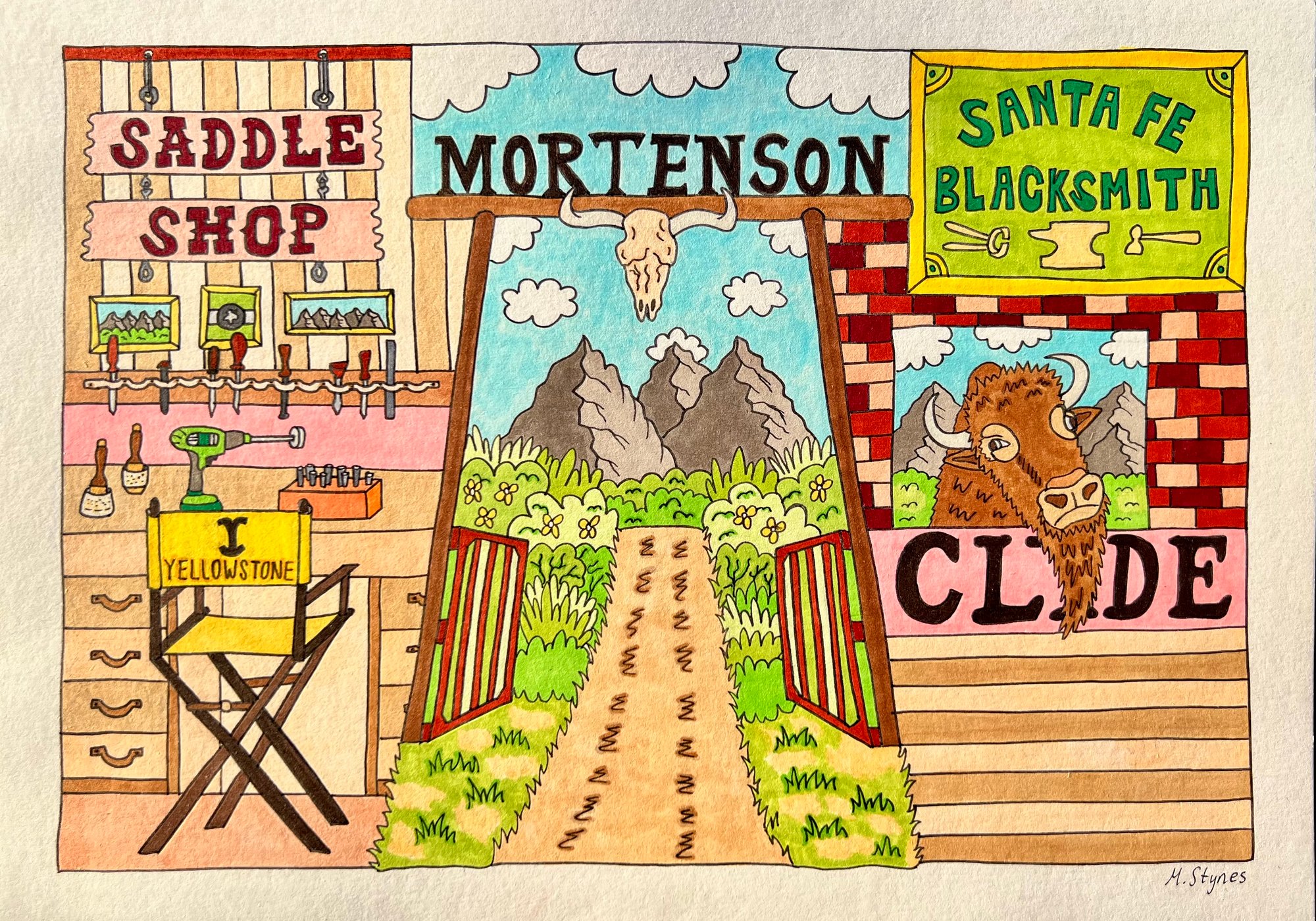 The pendant responds to the ‘Mortenson Ranch’ illustration. While the drawing brings the scenic ranch to your walls, the charm lets you carry a piece of luck with you.