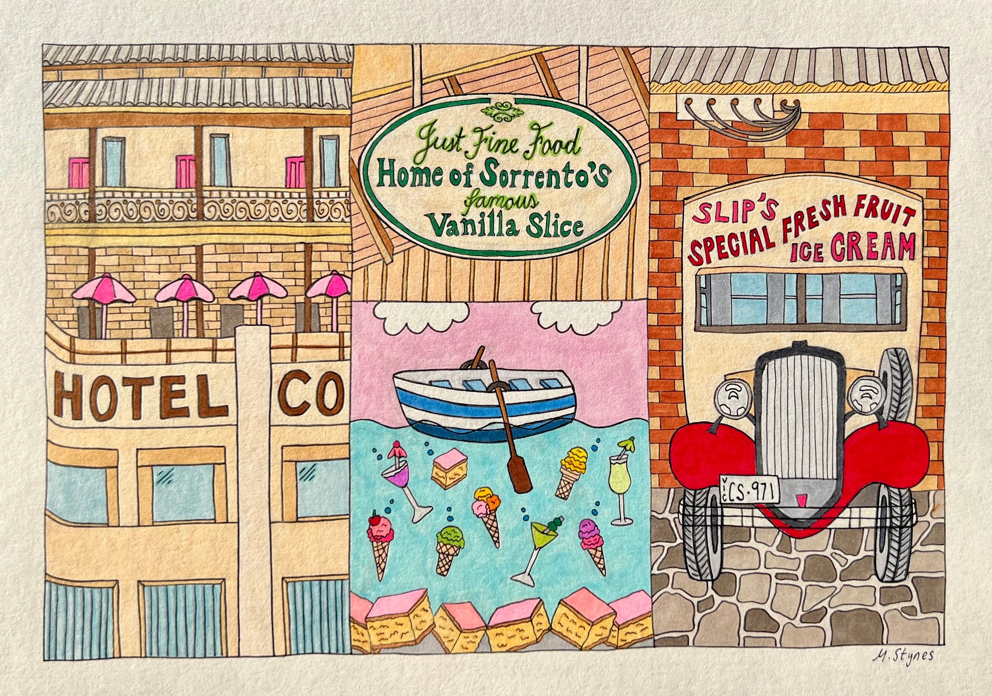 The Ice Cream Charm celebrates the summer treat sold from ‘Slip’s’ ice cream van on Sorrento front beach in the 1940s.