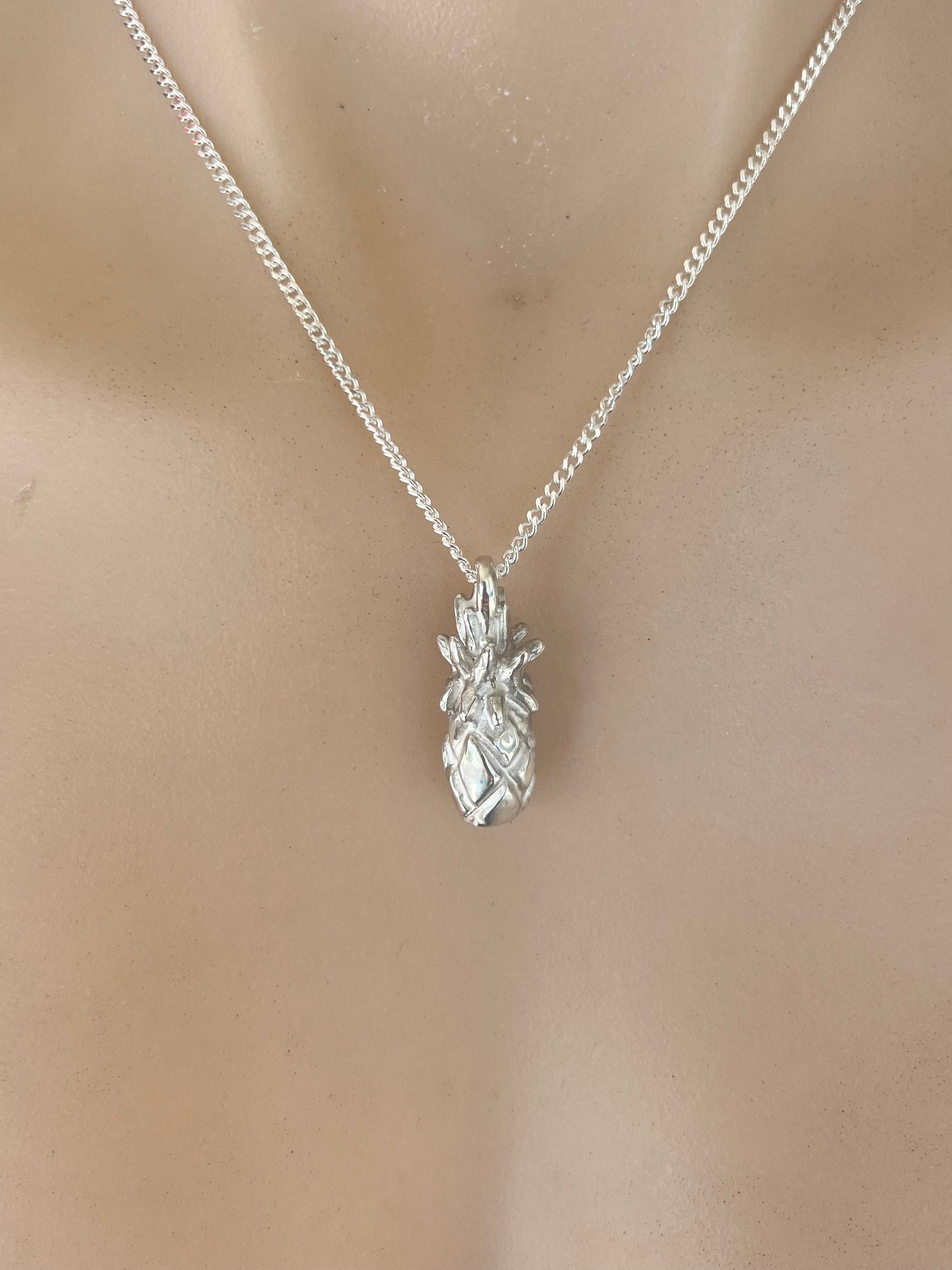 Crafted from recycled sterling silver, the handmade charm features both matte and high polished finishes. The sterling silver chain is included with purchase. Due to the handmade nature of the jewellery, no two pieces are exactly the same, and yours may vary slightly to the piece pictured.